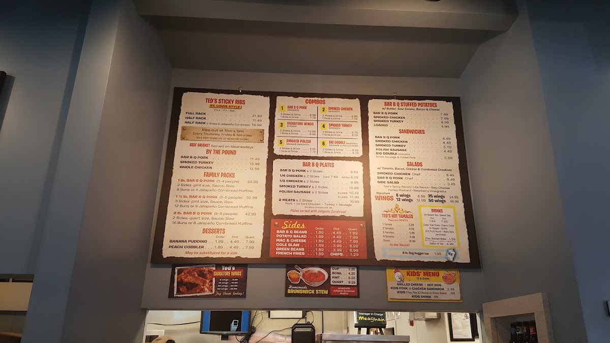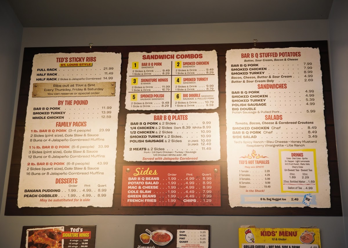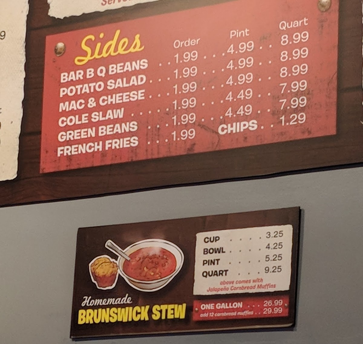 3-4 People --- 2 Sides (pint size), Cole Slaw, Sauce & 8 Buns or 4 Jalapeno Cornbread Muffins